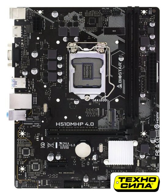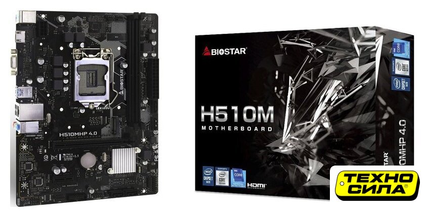 mATX, сокет Intel LGA1200, чипсет Intel H510, память 2xDDR4, слоты: 1xPCIe x16, 1xPCIe x1, 1xM.2