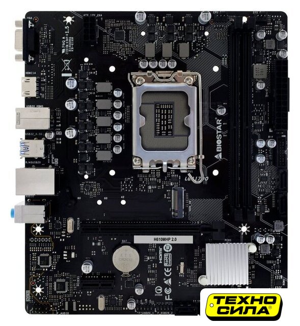 mATX, сокет Intel LGA1700, чипсет Intel H610, память 2xDDR4 до 3200 МГц, слоты: 1xPCIe x16 4.0, 1xPCIe x1, 1xM.2