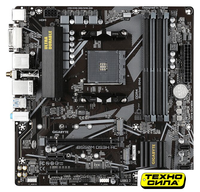 ATX, сокет AMD AM4, чипсет AMD B550, память 4xDDR4, слоты: 2xPCIe x16, 3xPCIe x1, 2xM.2