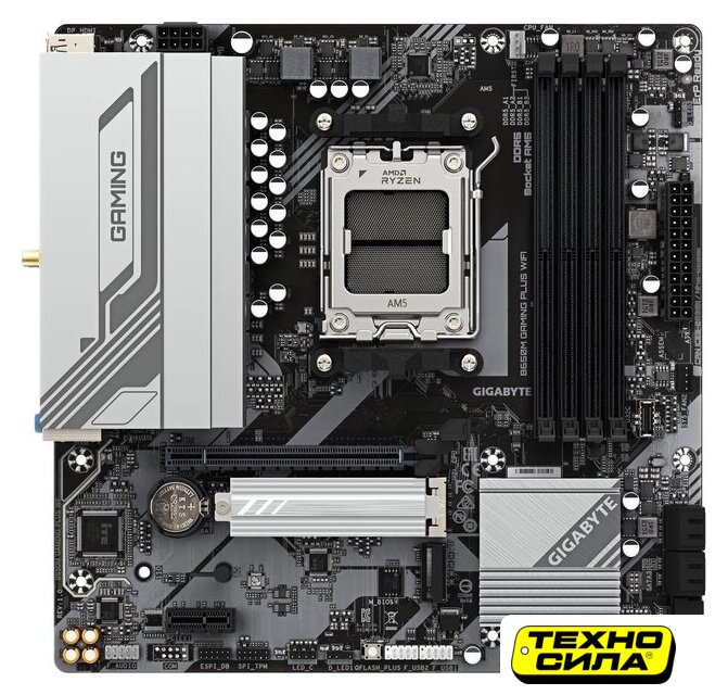 mATX, сокет AMD AM5, чипсет AMD B650, память 4xDDR5 до 7600 МГц, слоты: 2xPCIe x16 4.0, 1xPCIe x1, 2xM.2, 802.11ax (Wi-Fi 6E)+Bluetooth 5.3, 12+2+1 фаз питания