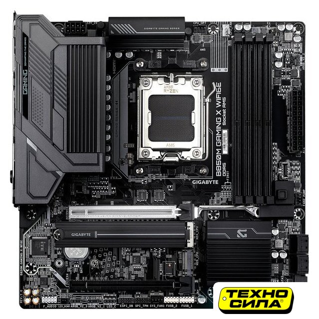 ATX, чипсет AMD B850, память 4xDDR5 до 8000 МГц, слоты: 4xPCIe x16 5.0, 3xM.2, 802.11ax (Wi-Fi 6E)+Bluetooth 5.3, 8+2+1 фаз питания