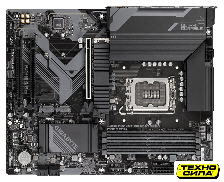 ATX, сокет Intel LGA1700, чипсет Intel B760, память 4xDDR4, слоты: 2xPCIe x16, 2xPCIe x1, 3xM.2