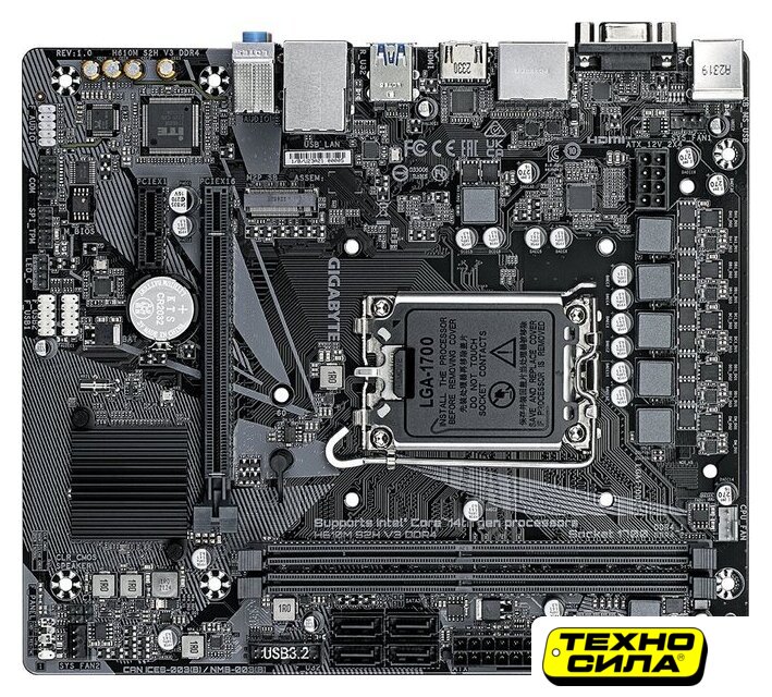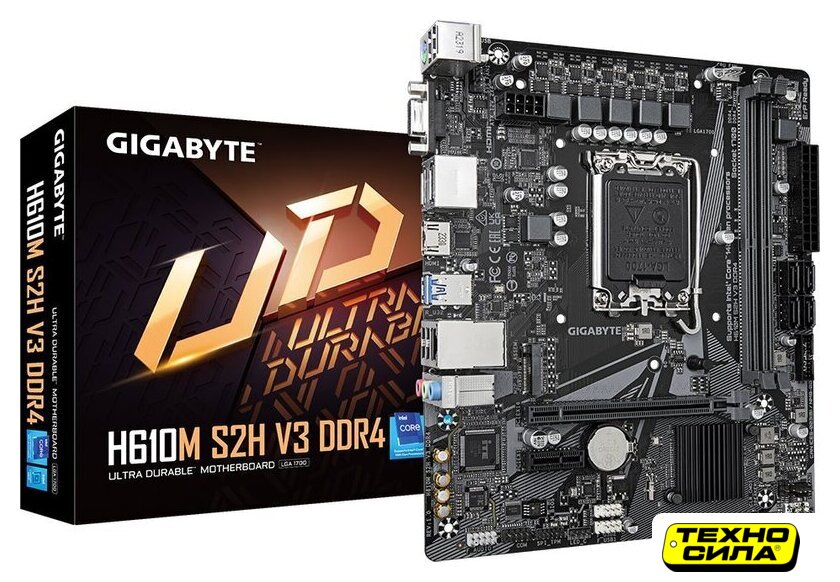 mATX, сокет Intel LGA1700, чипсет Intel H610, память 2xDDR4 до 3200 МГц, слоты: 1xPCIe x16 4.0, 1xPCIe x1