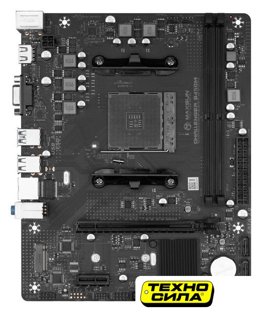 mATX, сокет AMD AM4, чипсет AMD B450, память 2xDDR4, слоты: 1xPCIe x16, 2xPCIe x1