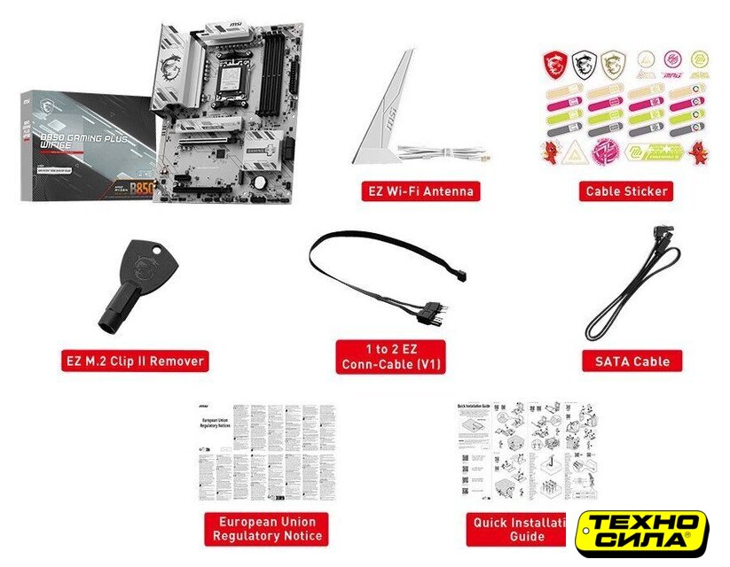 | Комплектация | - кабель SATA - Wi-Fi антенна - 1-2 EZ кабель - набор стикеров- EZ M.2 Clip II экстрактор- документация |