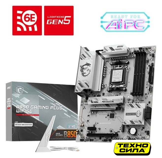 ATX, чипсет AMD B850, память 4xDDR5 до 8000 МГц, слоты: 4xPCIe x16 5.0, 3xM.2, 802.11ax (Wi-Fi 6E)+Bluetooth 5.3, 8+2+1 фаз питания