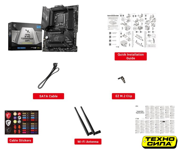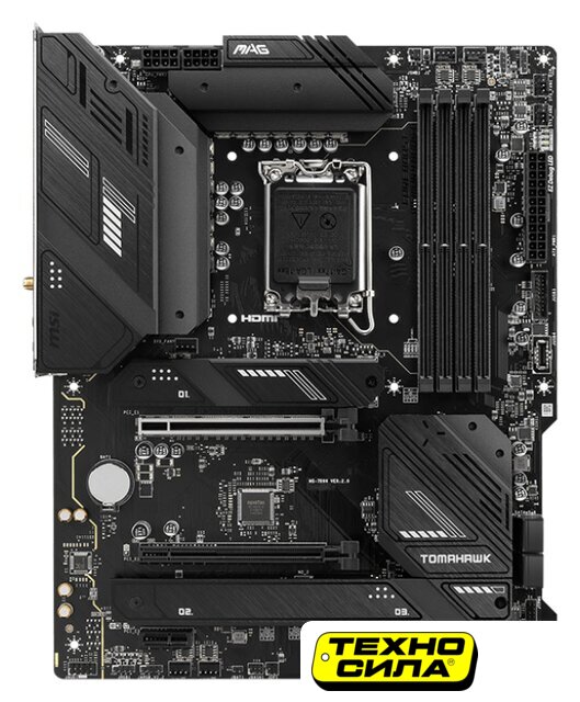 mATX, сокет Intel LGA1700, чипсет Intel B760, память 4xDDR4 до 5333 МГц, слоты: 2xPCIe x16 5.0, 1xPCIe x1, 2xM.2, 802.11ax (Wi-Fi 6)+Bluetooth 5.2, 12+1 фаз питания