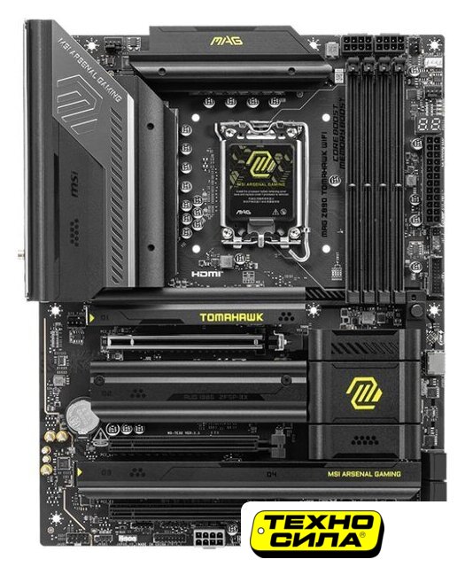 ATX, сокет Intel LGA1851, чипсет Intel Z890, память 4xDDR5 до 9500 МГц, слоты: 3xPCIe x16 5.0, 5xM.2, 802.11be (Wi-Fi 7)+Bluetooth 5.4, 16+1+2 фаз питания
