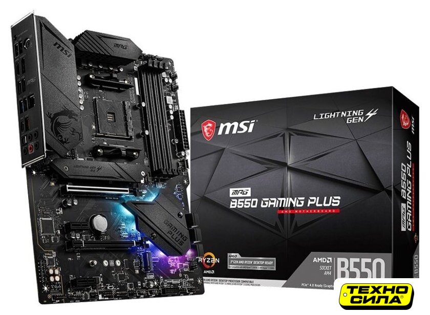 ATX, сокет AMD AM4, чипсет AMD B550, память 4xDDR4, слоты: 2xPCIe x16, 3xPCIe x1, 2xM.2
