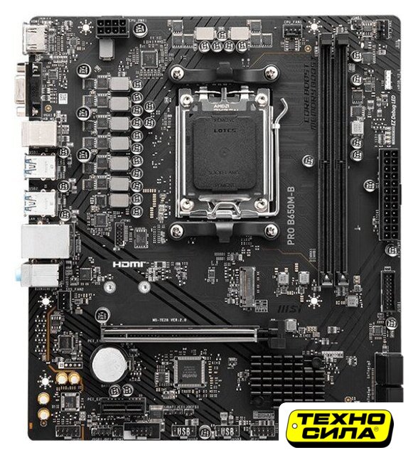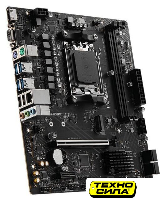 mATX, сокет AMD AM5, чипсет AMD B650, память 2xDDR5 до 6400 МГц, слоты: 1xPCIe x16, 2xPCIe x1, 2xM.2