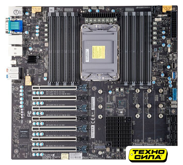 eATX, сокет Intel LGA3647, чипсет Intel C621, память 12xDDR4, слоты: 7xPCIe x16, 4xM.2