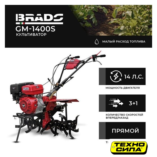 мотокультиватор, двигатель бензиновый четырехтактный 7 л.с. 5150 Вт