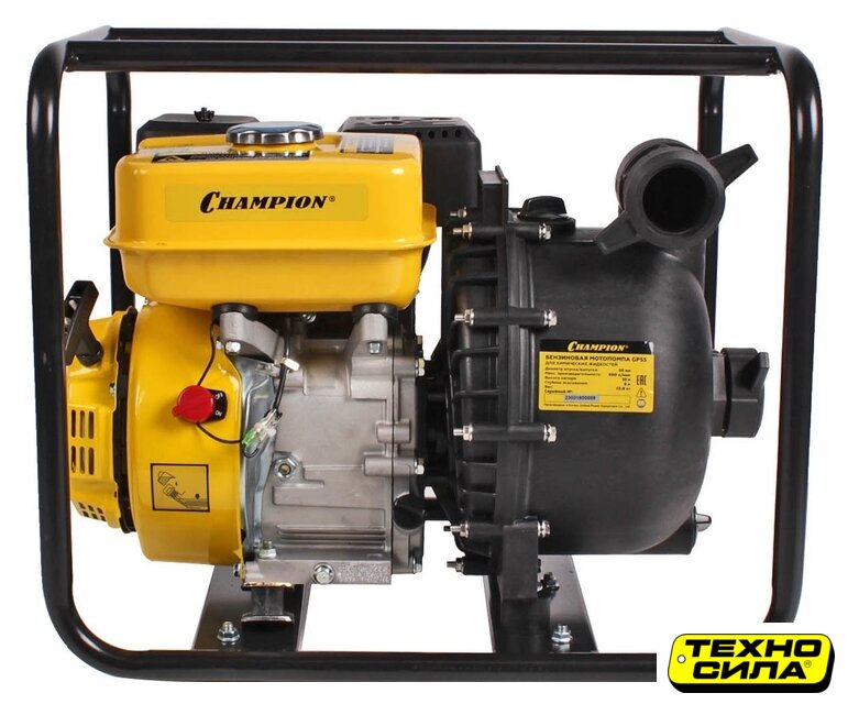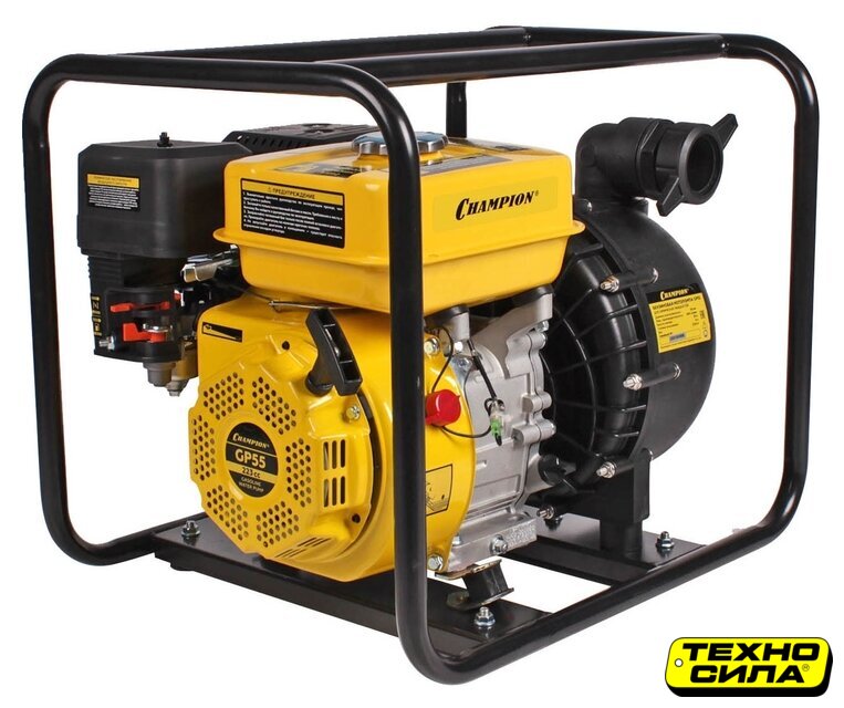 бензиновый двигатель, мощность 5.5 кВт, производительность 300 л/мин, высота подъема 75 м, бак 3.6 л, патрубки 50/50 мм