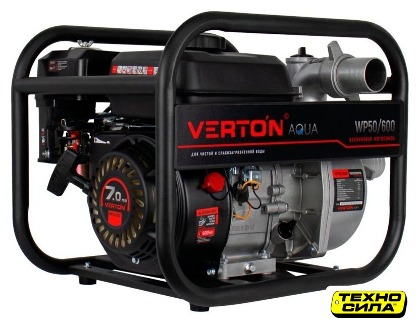 для слабозагрязненной воды, бензиновый двигатель, мощность 4.9 кВт, производительность 700 л/мин, высота подъема 26 м, бак 3.6 л, патрубки 50/50 мм