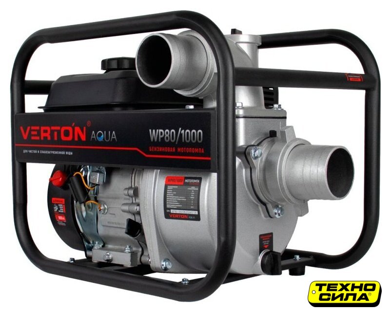 для слабозагрязненной воды, бензиновый двигатель, мощность 5.2 кВт, производительность 1200 л/мин, высота подъема 25 м, бак 3.6 л, патрубки 80/80 мм