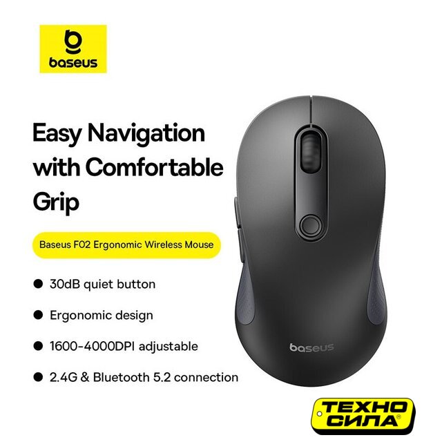 полноразмерная вертикальная мышь, беспроводная Bluetooth/беспроводная радио, сенсор оптический 4000 dpi, 6 кнопок, колесо с нажатием, цвет черный