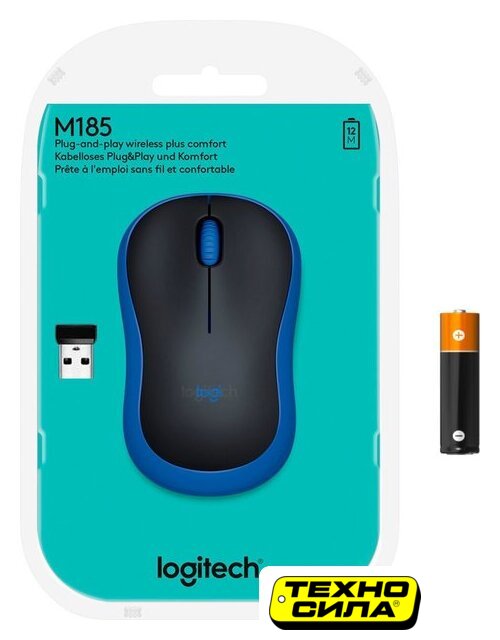 полноразмерная мышь для ПК, беспроводная радио/Bluetooth, сенсор оптический 1200 dpi, 3 кнопки, колесо с нажатием, цвет черный/синий