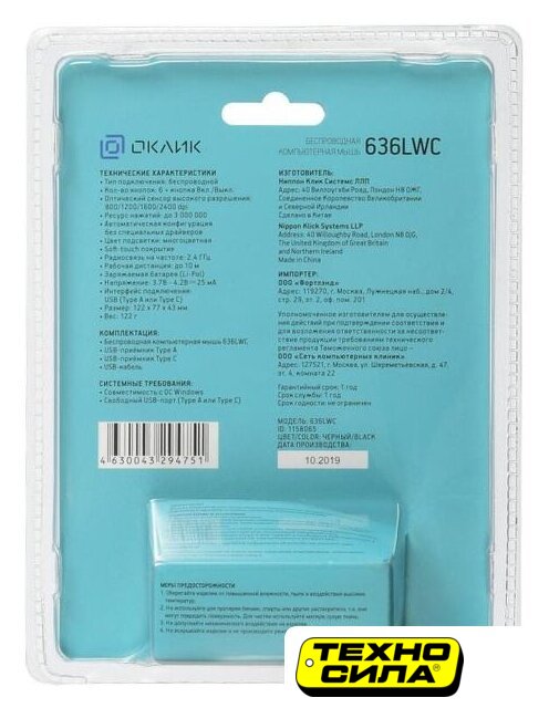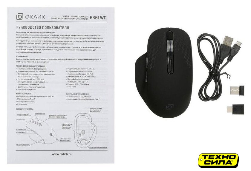 | Комплектация | Беспроводная компьютерная мышь 636LWC;USB-ресивер Type A;USB-ресивер Type C;USB-кабель для зарядки. |
