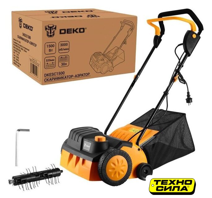 скарификатор-аэратор, электрический двигатель, 1200 Вт, 1.63 л.с., ширина скашивания: 31 см, мягкий травосборник 28 л
