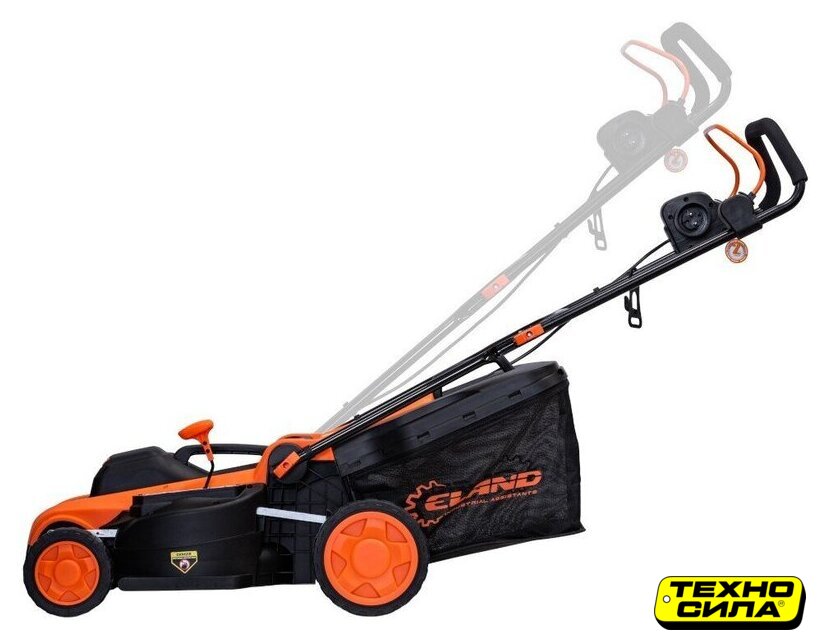 роторная газонокосилка, электрический двигатель, 1600 Вт, 2.17 л.с., ширина скашивания: 38 см, мягкий травосборник 45 л
