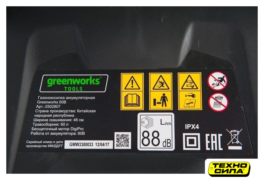 Комплектация | - Аккумуляторная газонокосилка - Заглушка для мульчирования- Вставка для бокового выброса травы- Мешок-травосборник- Руководство по эксплуатации- Гарантийный талон |