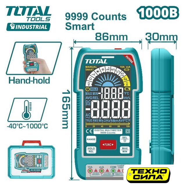 Измерение | емкость, переменное напряжение, переменный ток, постоянное напряжение, постоянный ток, сопротивление, частота |