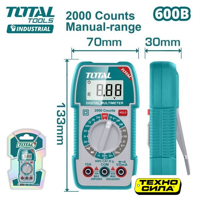 мультиметр, DC 1000 В, AC 700 В, ЖК дисплей, ручное переключение пределов, прозвонка, подсветка
