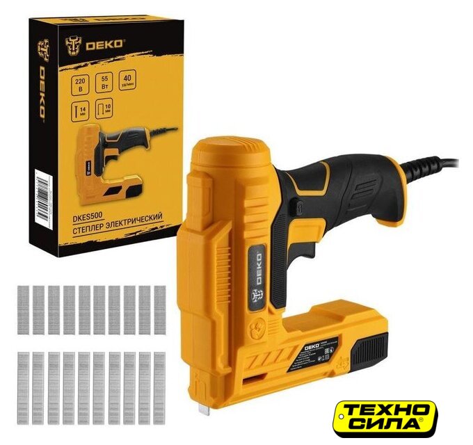 Комплектация | - Степлер - 1 шт.- Cкобы - 1000 шт.- Гвозди - 500 шт.- Руководство по эксплуатации- Коробка |