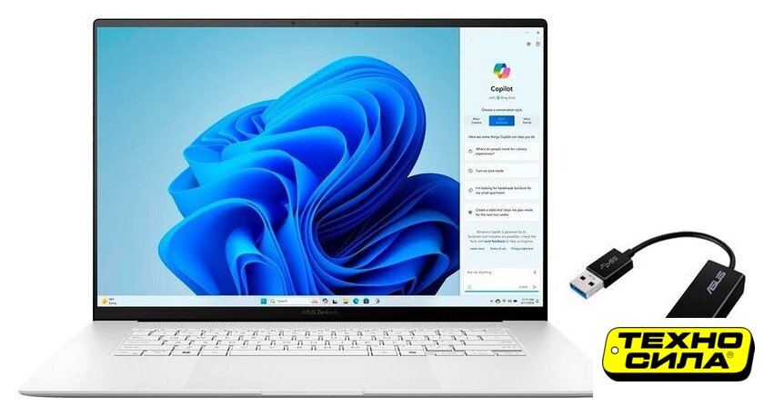 2880 x 1800 OLED, AMD Ryzen AI 9 365, 24 ГБ, SSD 1024 ГБ, встроенная, Windows 11 Home, цвет крышки белый