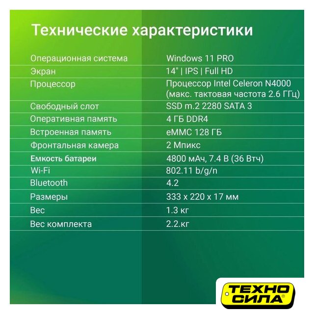 14.0" 1920 x 1080, IPS, 60 Гц, Intel Processor N100, 8 ГБ DDR4, SSD 256 ГБ, видеокарта встроенная, Windows 11 Pro, цвет крышки серый, аккумулятор 38.5 Вт·ч