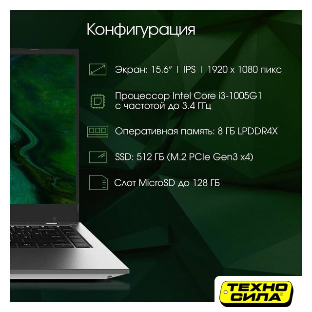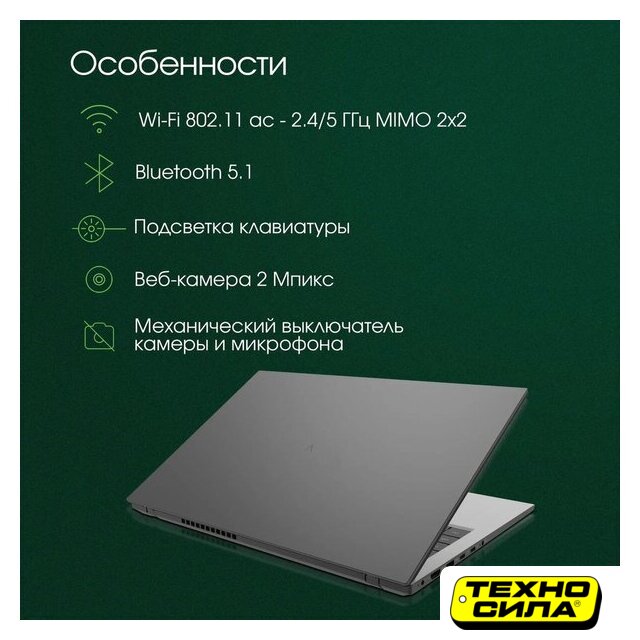 15.6" 1920 x 1080, TN+Film, 60 Гц, Intel Core i3 1305U, 8 ГБ LPDDR5, SSD 256 ГБ, видеокарта встроенная, без ОС, цвет крышки серый, аккумулятор 47 Вт·ч