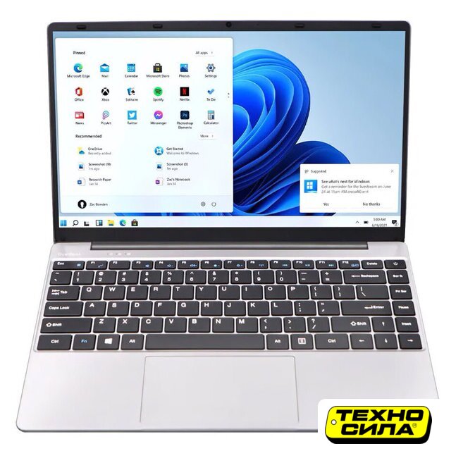 15.6" 1920 x 1080, IPS, 60 Гц, Intel Processor N100, 8 ГБ LPDDR5, SSD 256 ГБ, видеокарта встроенная, Windows 11 Pro, цвет крышки серебристый, аккумулятор 45 Вт·ч