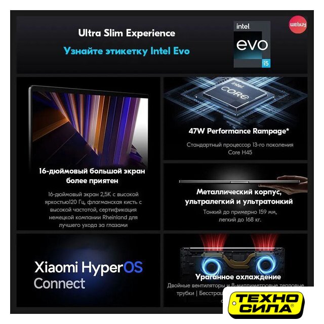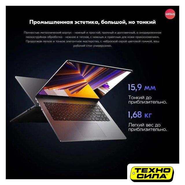 16.0" 1920 x 1200, IPS, 60 Гц, Intel Core i7 12650H, 16 ГБ LPDDR4X, SSD 512 ГБ, видеокарта встроенная, без ОС, цвет крышки серебристый, аккумулятор 70 Вт·ч