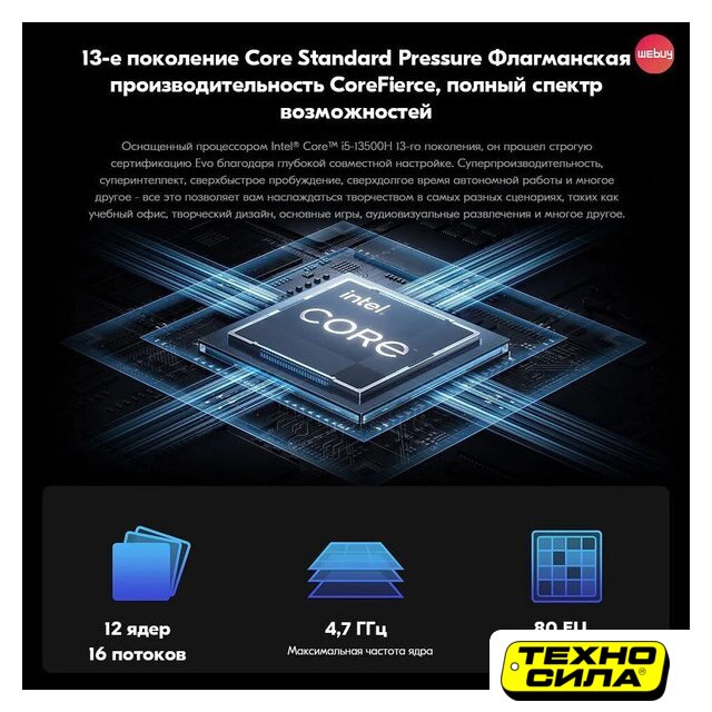 2560 x 1600 IPS, Intel Core i5 13500H, 16 ГБ, SSD 1024 ГБ, встроенная, без ОС, цвет крышки серебристый
