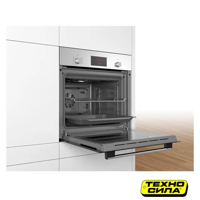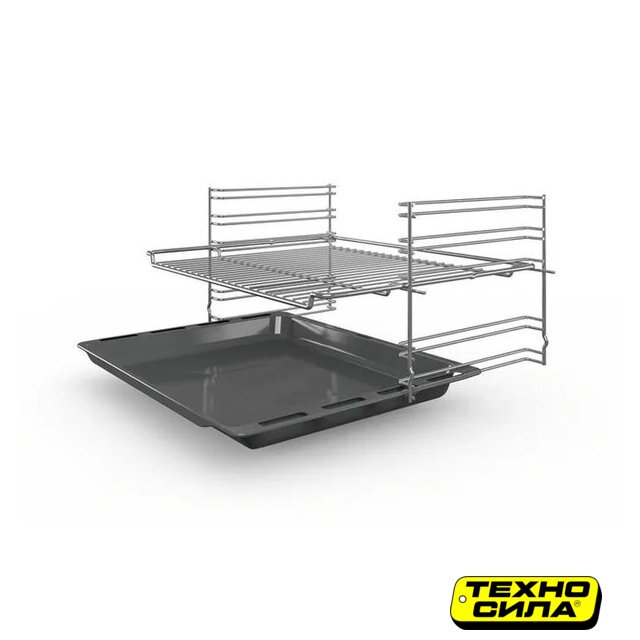 электрический с конвекцией, объем 77 л, утапливаемые переключатели, 9 режимов, очистка пиролитическая + паровая, 2 стекла в дверце, направляющие проволочные + телескопические (1 уровень)
