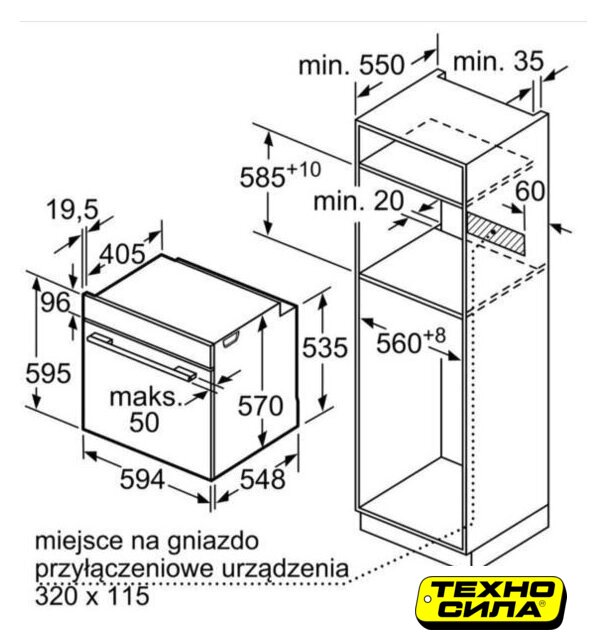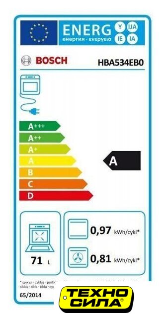 электрический с конвекцией, объем 60 л, 8 режимов, очистка ручная, проволочные направляющие, телескопические направляющие, энергопотребление A