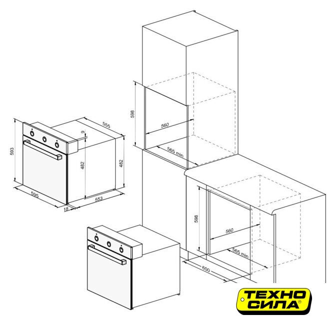 электрический с конвекцией, объем 55 л, утапливаемые переключатели, 4 режима, очистка паровая, 2 стекла в дверце, направляющие проволочные