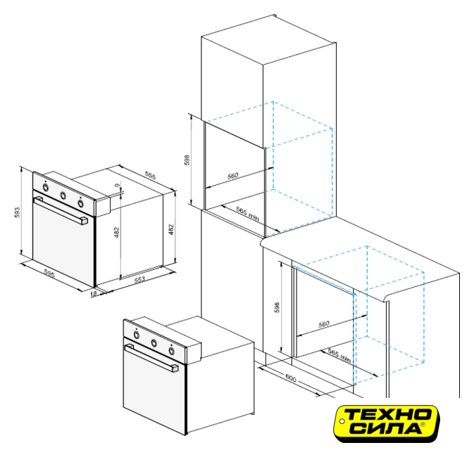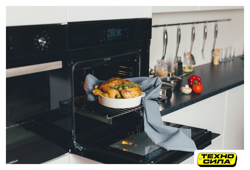 электрический с конвекцией, объем 51 л, 6 режимов, очистка ручная, 2 стекла в дверце, направляющие проволочные