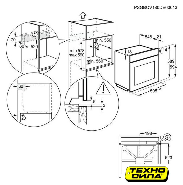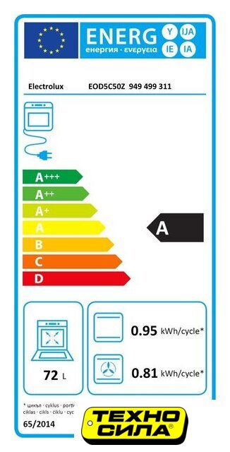 электрический с конвекцией, объем 65 л, утапливаемые переключатели, 8 режимов, очистка каталитическая, 2 стекла в дверце, направляющие проволочные + телескопические (1 уровень)