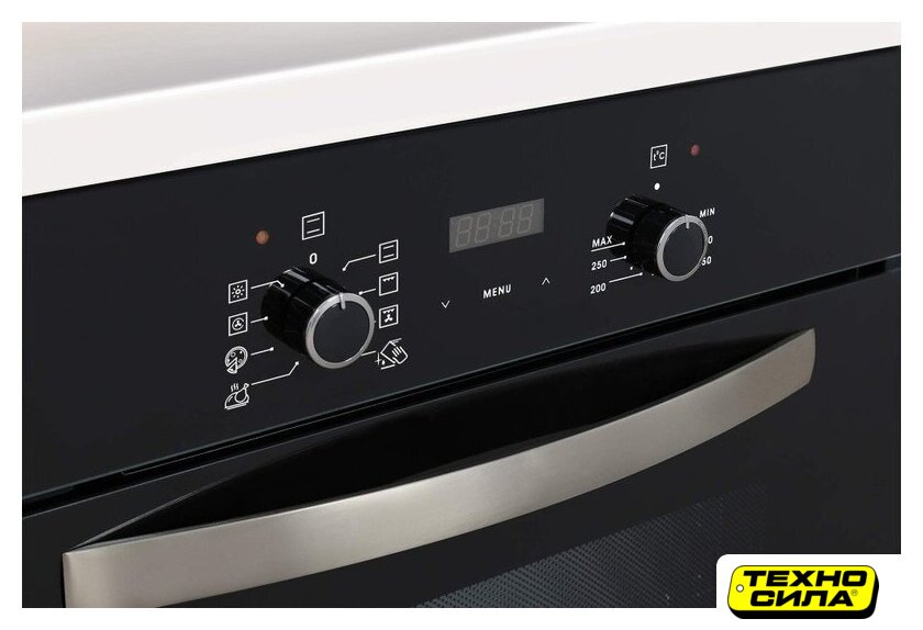 электрический с конвекцией, объем 60 л, утапливаемые переключатели, 6 режимов, очистка паровая, направляющие проволочные