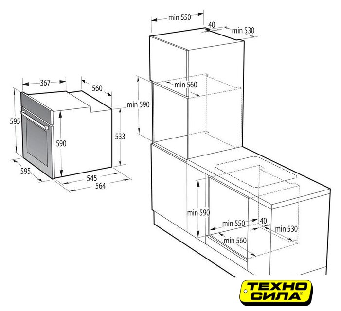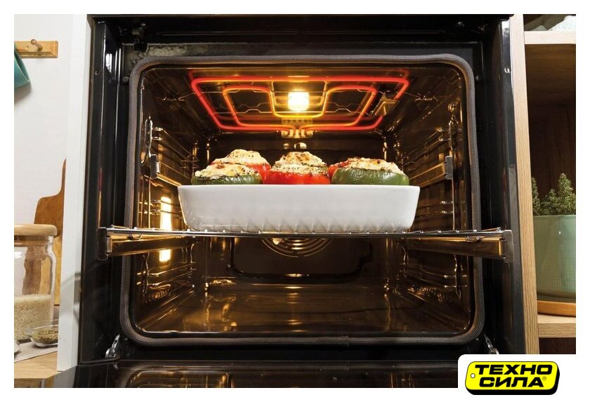 электрический с конвекцией, объем 60 л, 8 режимов, очистка ручная, проволочные направляющие, телескопические направляющие, энергопотребление A