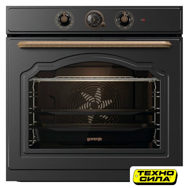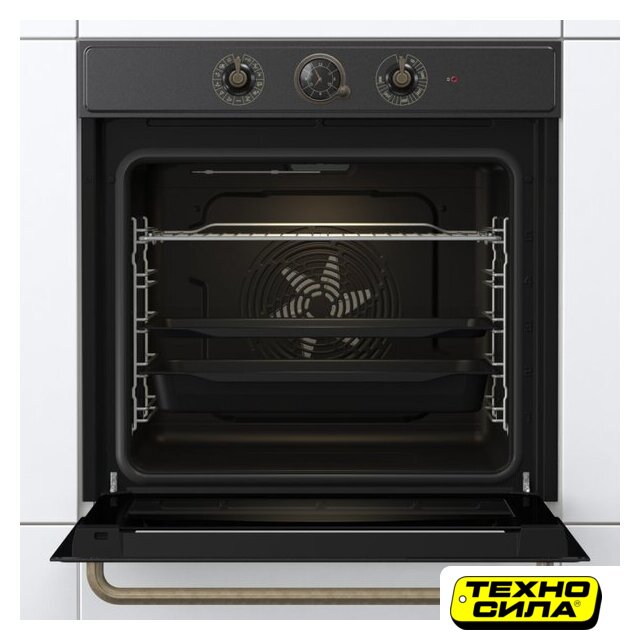 электрический с конвекцией, объем 45 л, ретродизайн, 8 режимов, очистка каталитическая + паровая, 2 стекла в дверце, направляющие проволочные + телескопические (1 уровень)