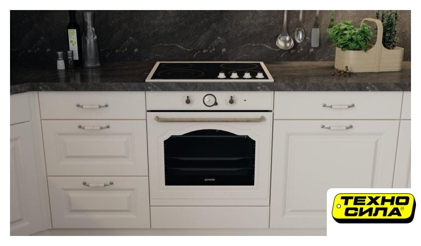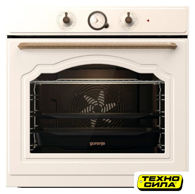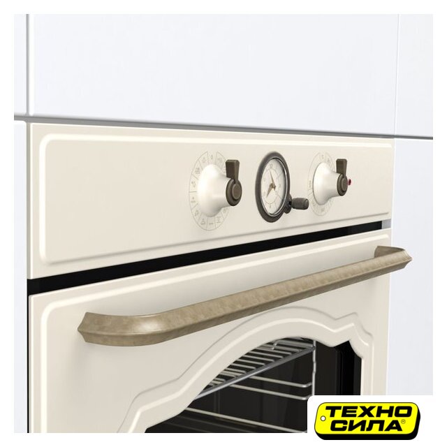 электрический с конвекцией, объем 67 л, ретродизайн, 6 режимов, очистка ручная, 3 стекла в дверце, направляющие проволочные
