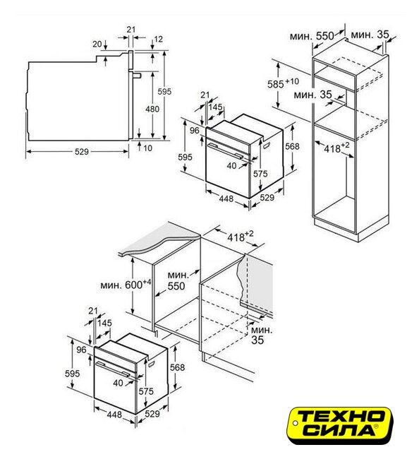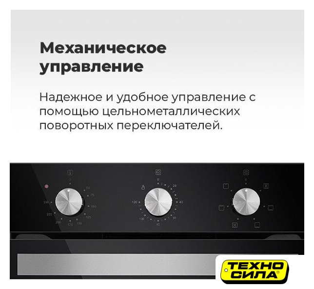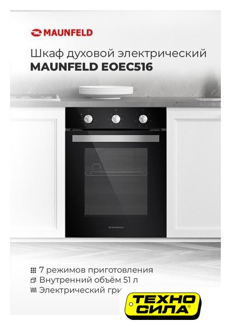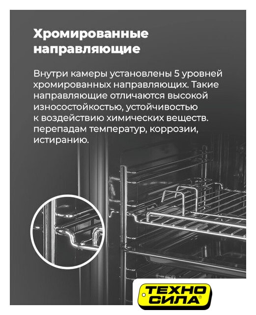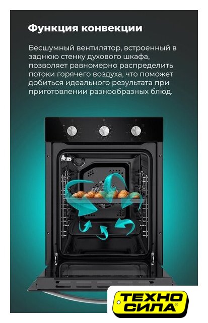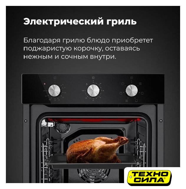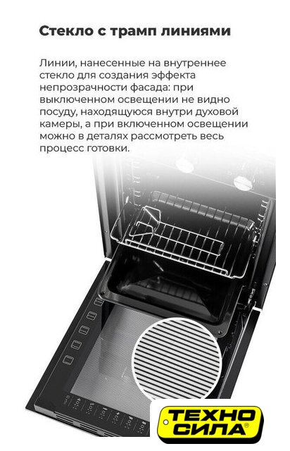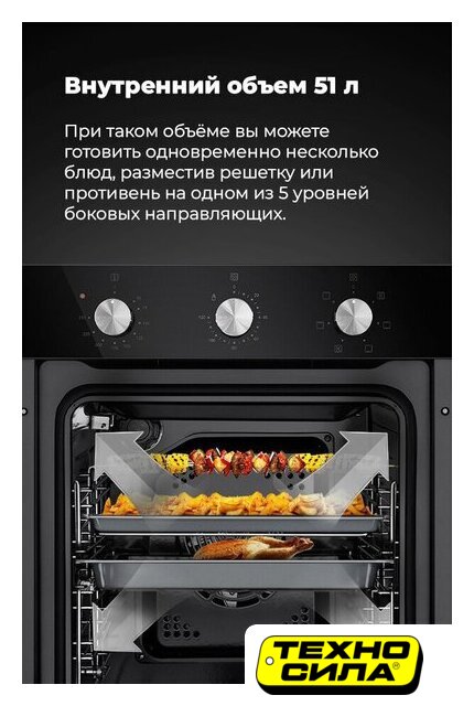 электрический с конвекцией, объем 52 л, утапливаемые переключатели, 7 режимов, очистка ручная, 2 стекла в дверце, направляющие проволочные + телескопические (1 уровень)