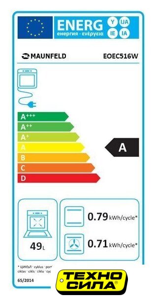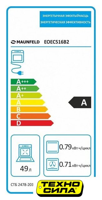 электрический с конвекцией, объем 60 л, очистка ручная, проволочные направляющие, телескопические направляющие, энергопотребление A