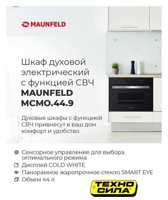 электрический с конвекцией, микроволны, объем 44 л, 7 режимов, очистка ручная