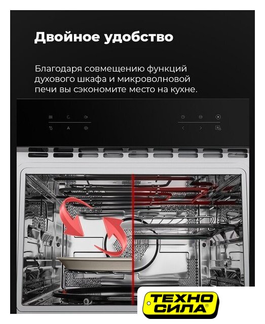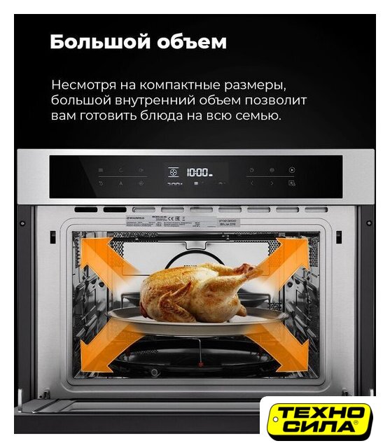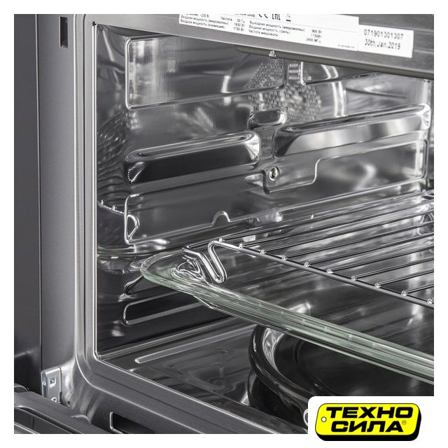 электрический с конвекцией, микроволны, приготовление на пару, объем 34 л, 7 режимов, автопрограммы, очистка ручная, направляющие рельефные