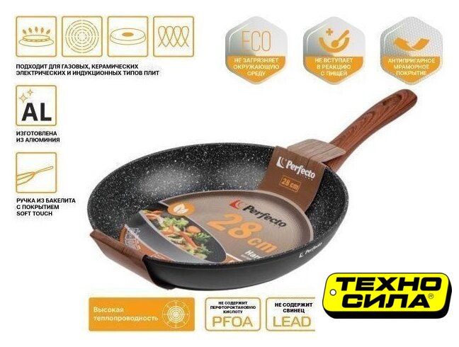 стандартная, алюминий, покрытие минеральное, 28 см, бакелитовая ручка