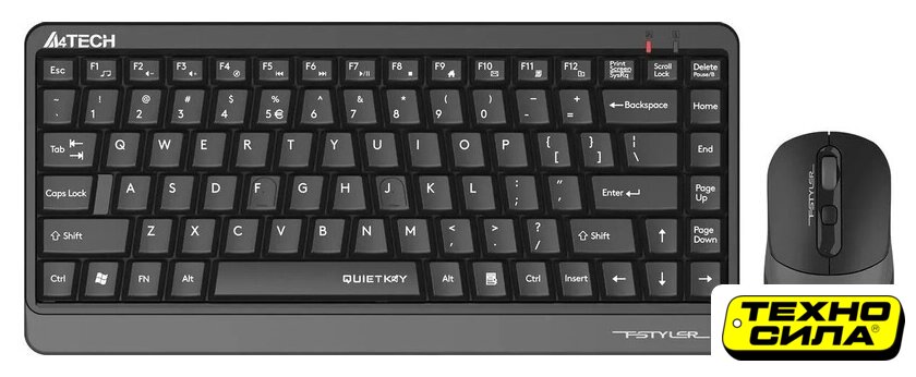 клавиатура + мышь для ПК, мышь беспроводная радио (сенсор оптический), клавиатура радио, цвет серый/черный