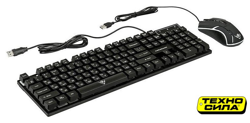 клавиатура + мышь для ПК, мышь проводная USB (сенсор оптический), клавиатура USB, цвет черный